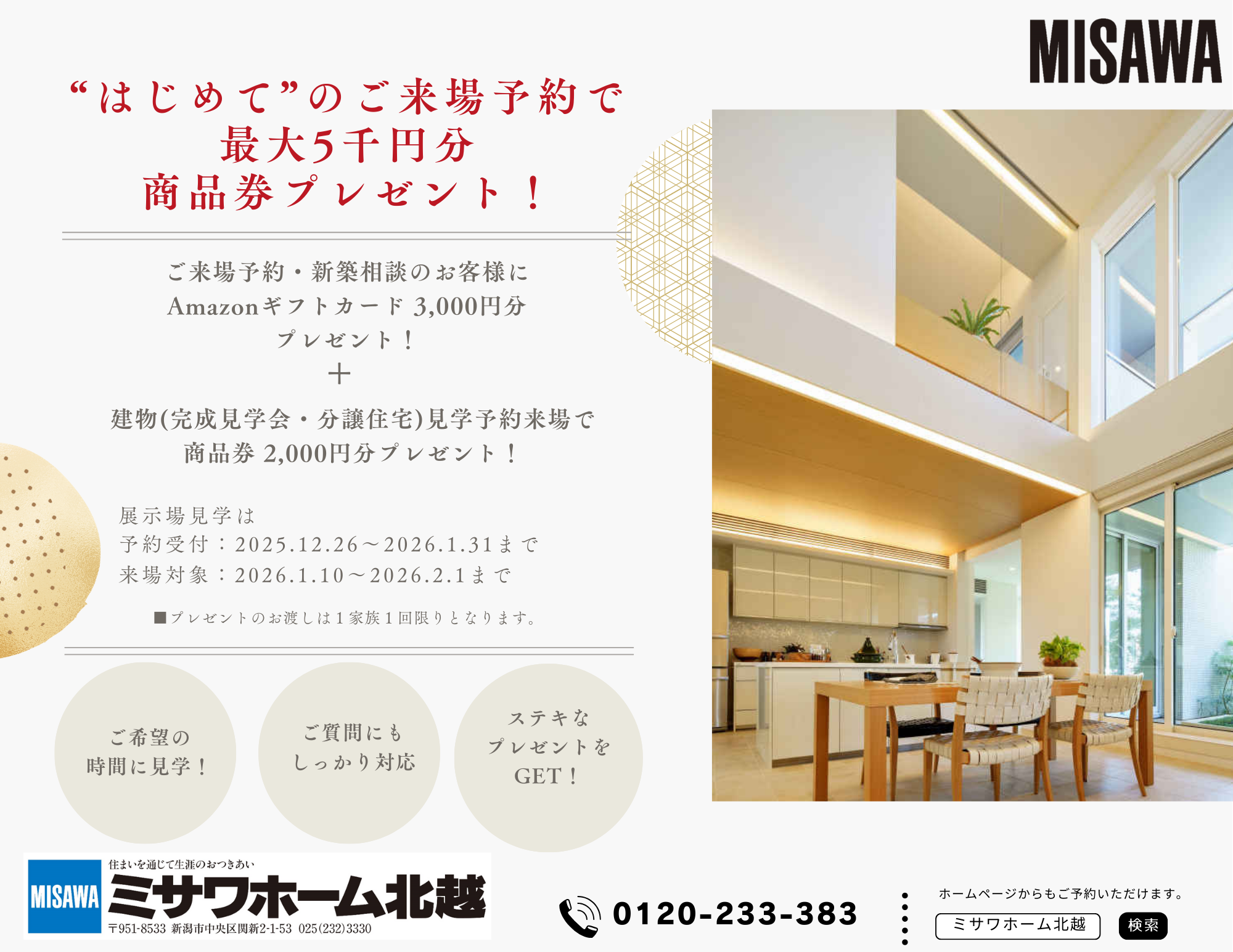 ※キャンペーン詳細はミサワホームホームページ、またはスタッフまで